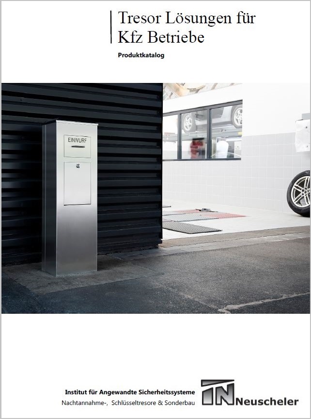 Mit unserem neuen Katalog erhalten Sie die komplette Produkt Übersicht über unsere praxisorientierten und leicht zu bedienenden Lösungen. Sie finden in unserem Katalog intelligente Nachtannahme & Ausgabe Systeme, Tresore für Geld Aufbewahrung, Deposit, Schlüsseltresore, Schlüsselverwaltung usw. Alles abgestimmt für die unterschiedlichsten Bereiche im Kfz Betrieb. Günstig, sicher und alles aus einer Hand.  -Made in Germany-